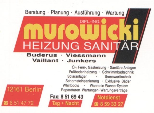 Dipl.-Ing.- Murowicki Haustechnikservice Berlin Heizung Notdienst Heizungwartung Gasthermen Reparatur Berlin Sanitär Notdienst Schnell & Gut EXPERTEN  | murowicki@t-online.de