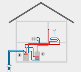 1 = Wärmepumpe 2 = Speicher-Wassererwärmer